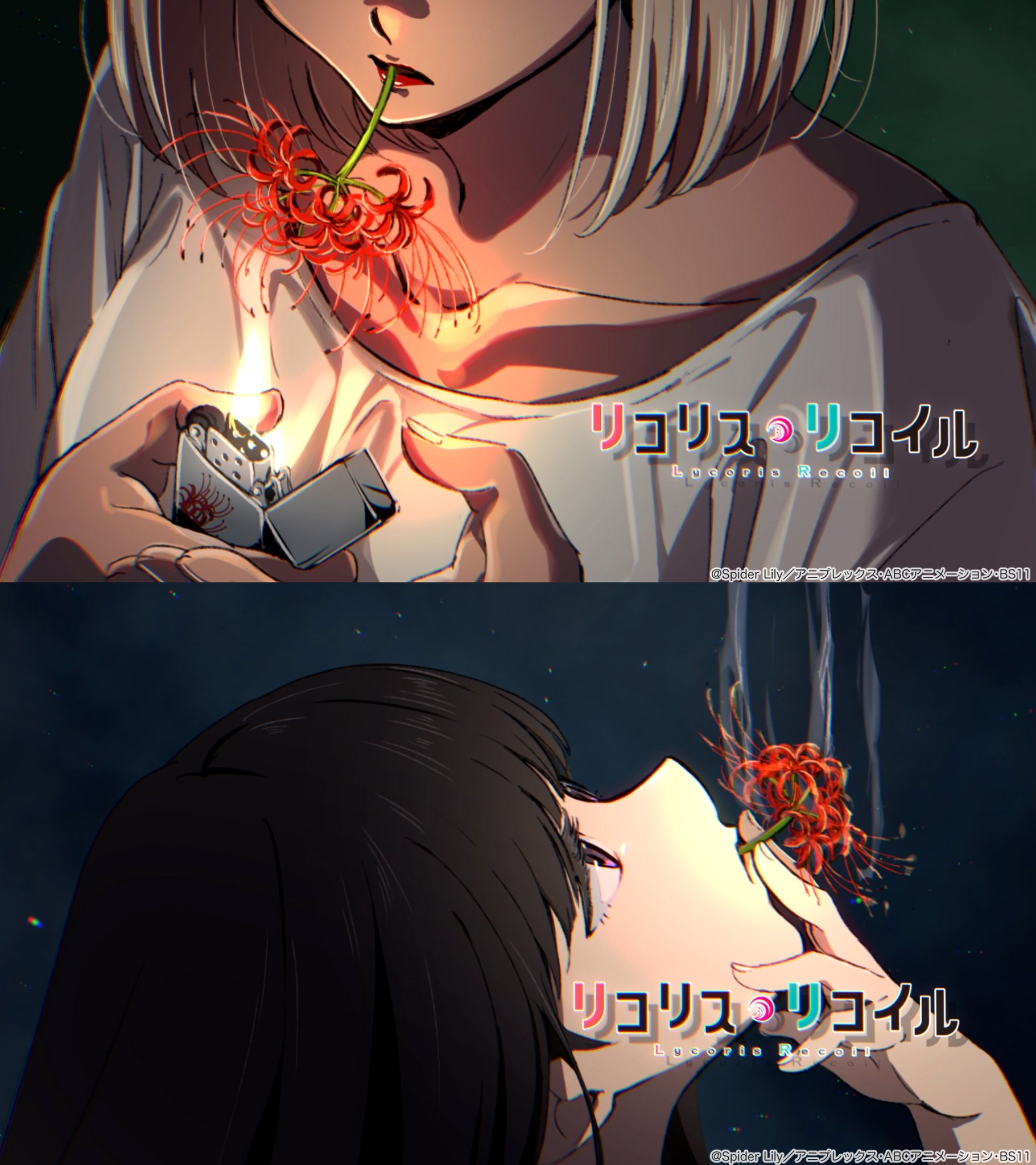 CM前には錦木千束、CM後には井ノ上たきなが喫煙をするかのように、火をつけたヒガンバナの花を咥えるシーンが描かれていた。