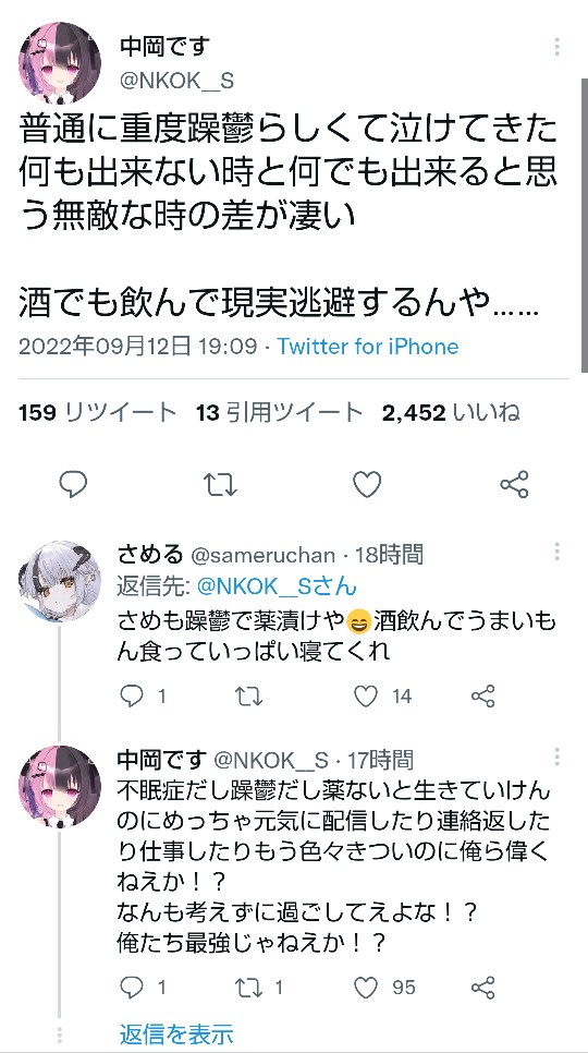 ちなみに薬いくら飲もうと治らない原因がホロライブの活動なら辞めるしか無いだろうな