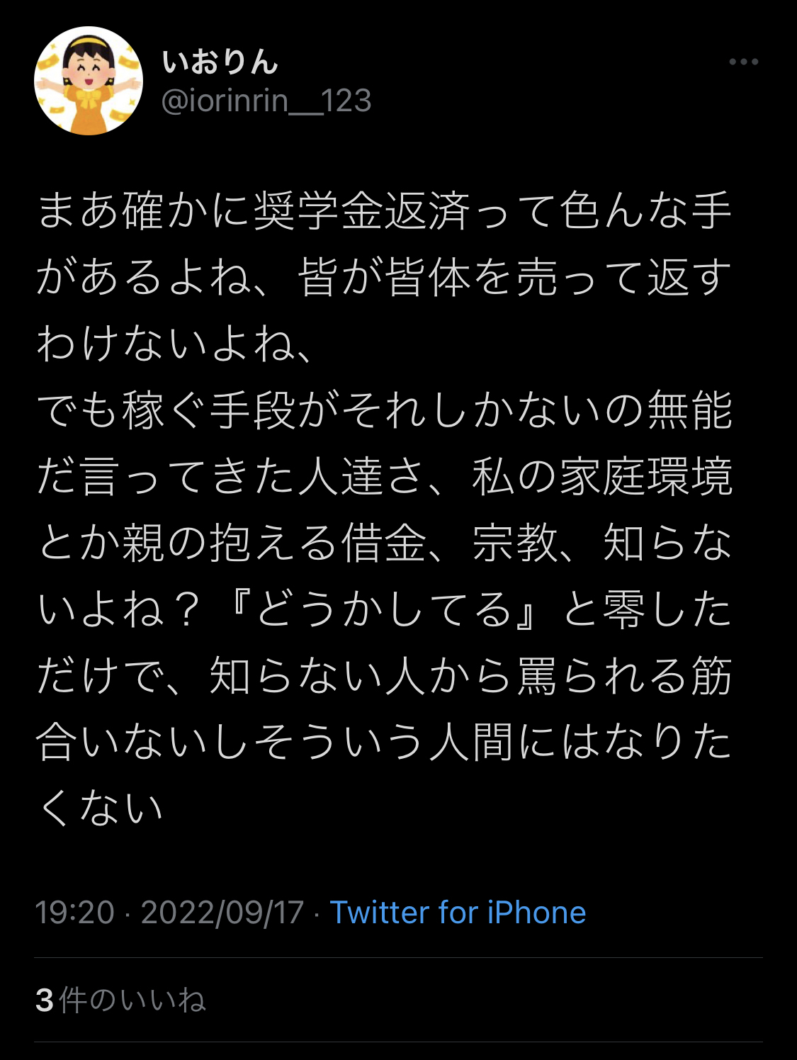 日本の女の子が、多額の奨学金や予備校費を払うにはどうすればいいか考えた時、最終的に体を売ることにしか辿り着けないのどうかしてる