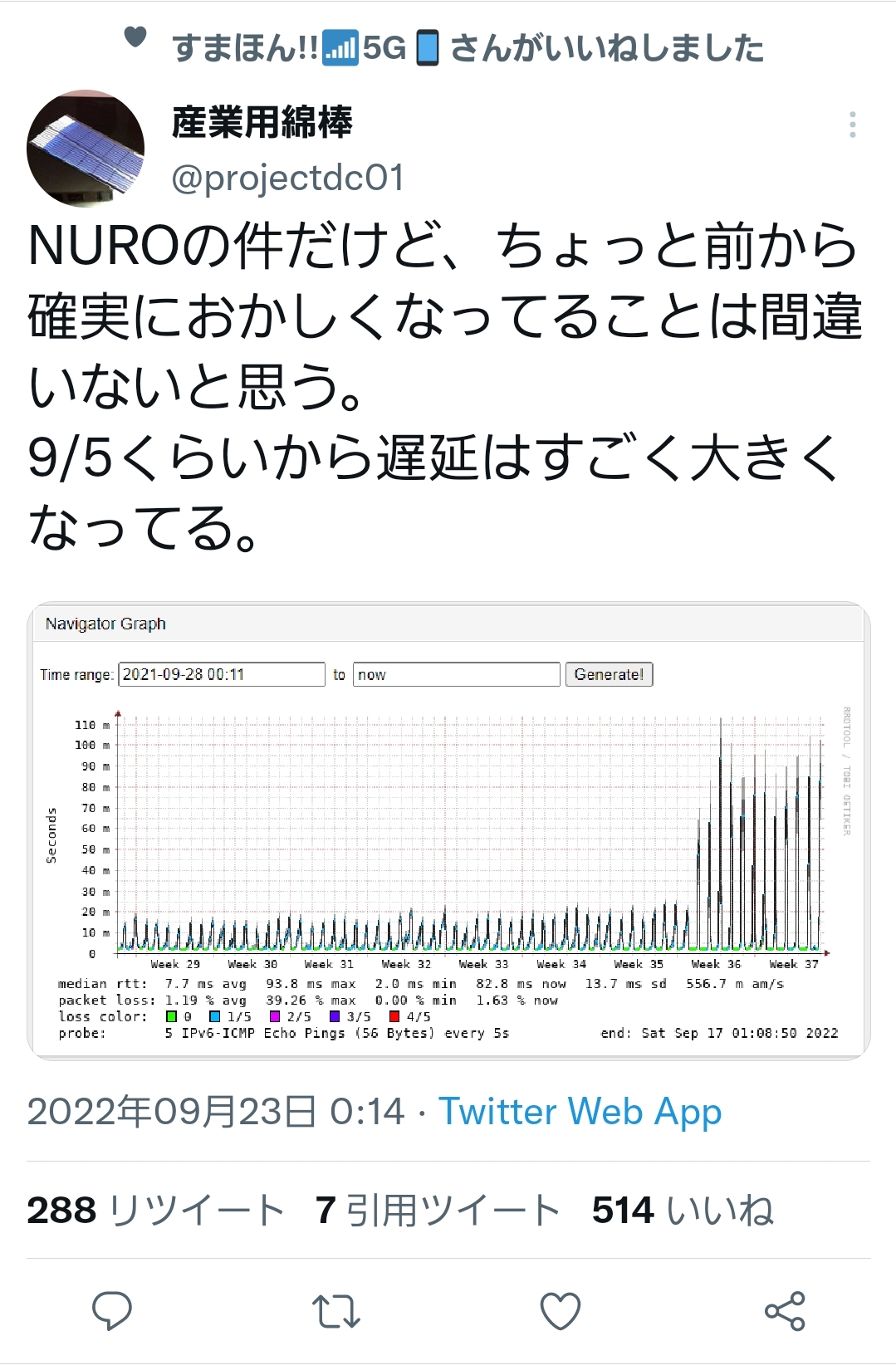 NURO光のアカウント(@NUROhikari_Sony)回線速度はえ~!って言ってるアカウントばかりにリプライ送ってるの本当に腹が立つな、現実見ろよ https://t.co/khI0bVi4nl