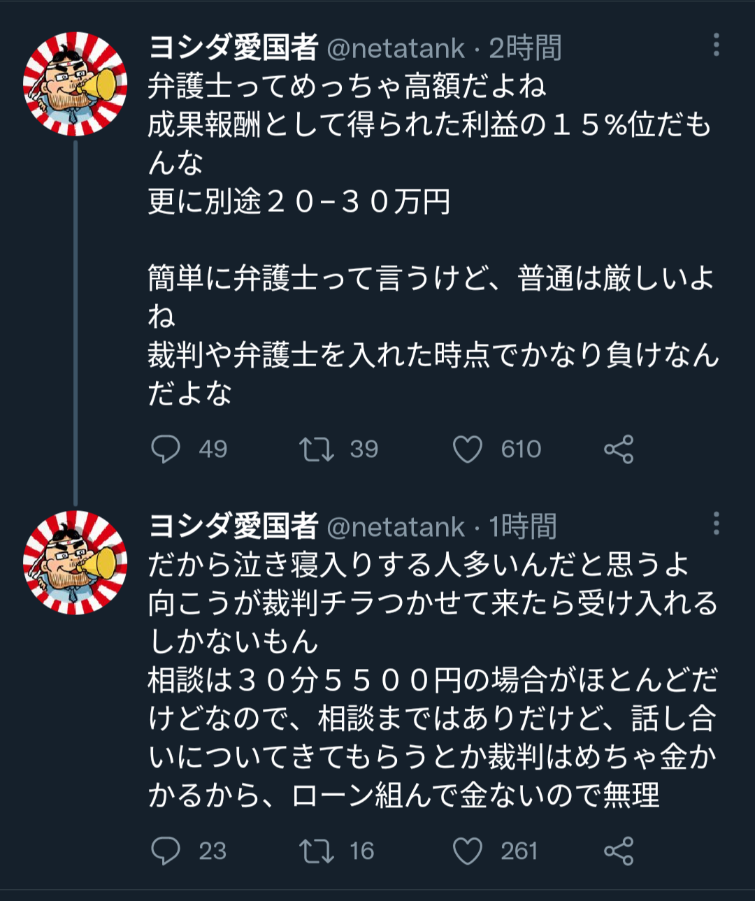 何万人のフォロワーがバックについてるから弁護士費用なんて楽勝やろ?