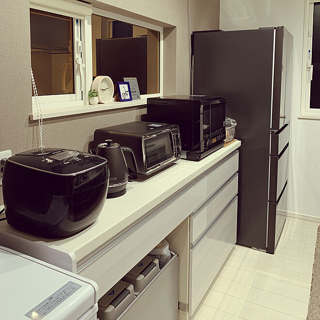 仏壇には見えんけど内装や他の家具がホワイト系で統一されとるのに冷蔵庫だけ黒いのは少し浮いとる様に見える