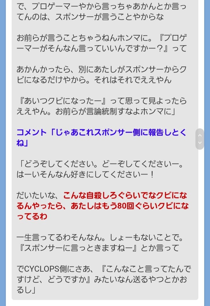 1番やばいのはスポンサーの看板背負ってんのにこれ言っちゃうとこやな