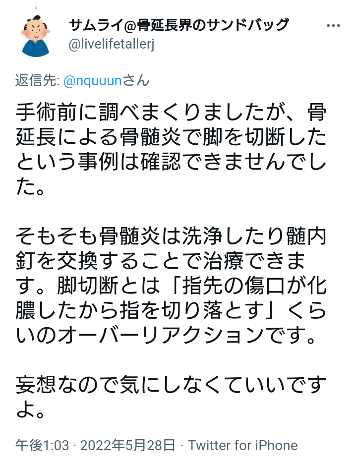 骨延長で骨髄炎になった奴らが騒がない訳だわ