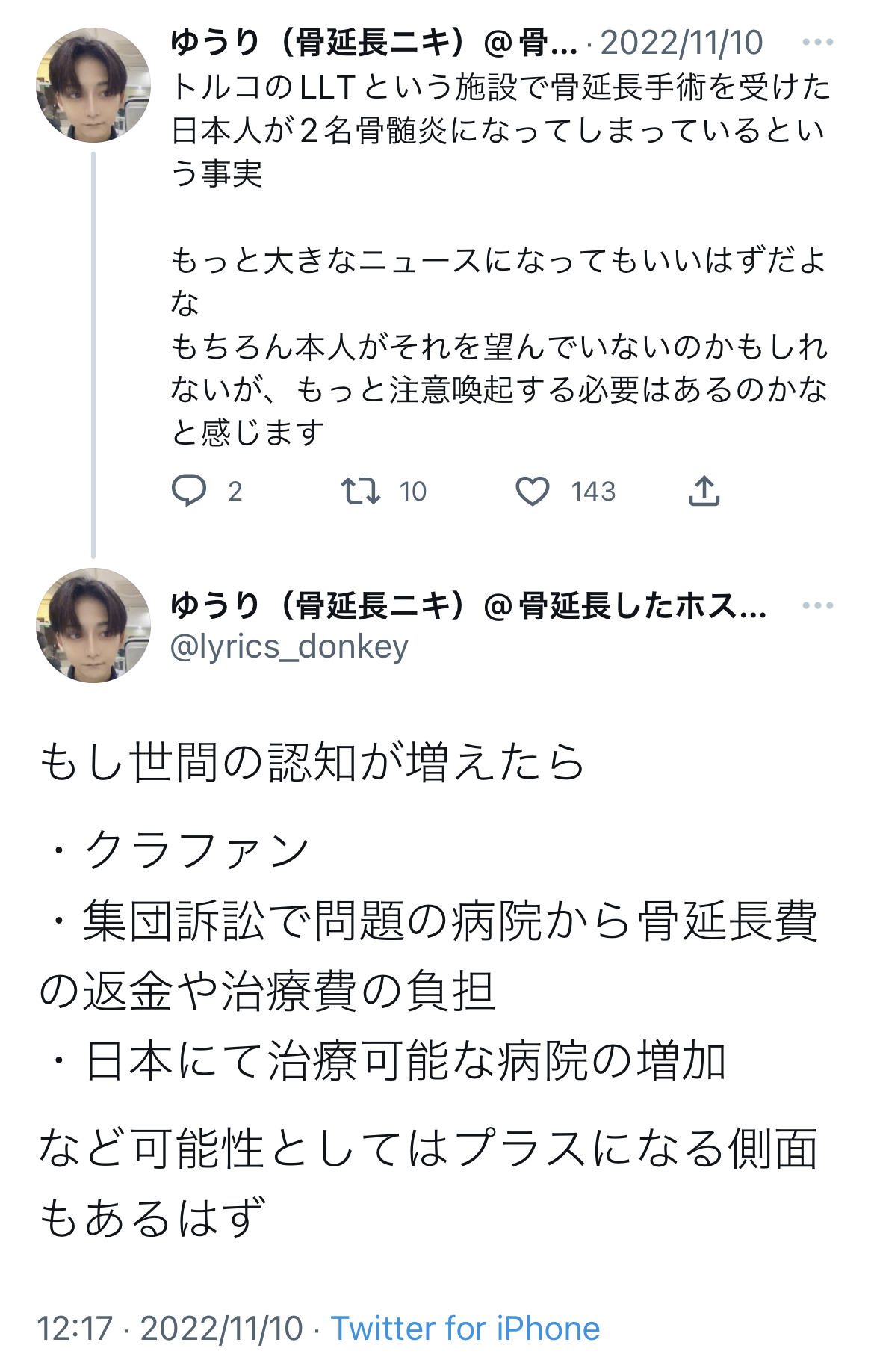 身をもって骨延長のヤバさを教えてくれたこびさん