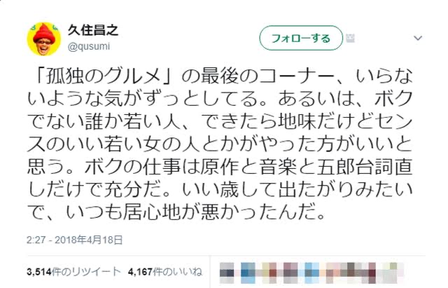 ところが、そんな『孤独のグルメ』に番組始まって以来の危機が訪れている。