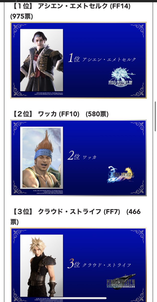 最新作かつ女ファンが多くネット投票に強そうなFF15、なぜか全く上位に来ない…