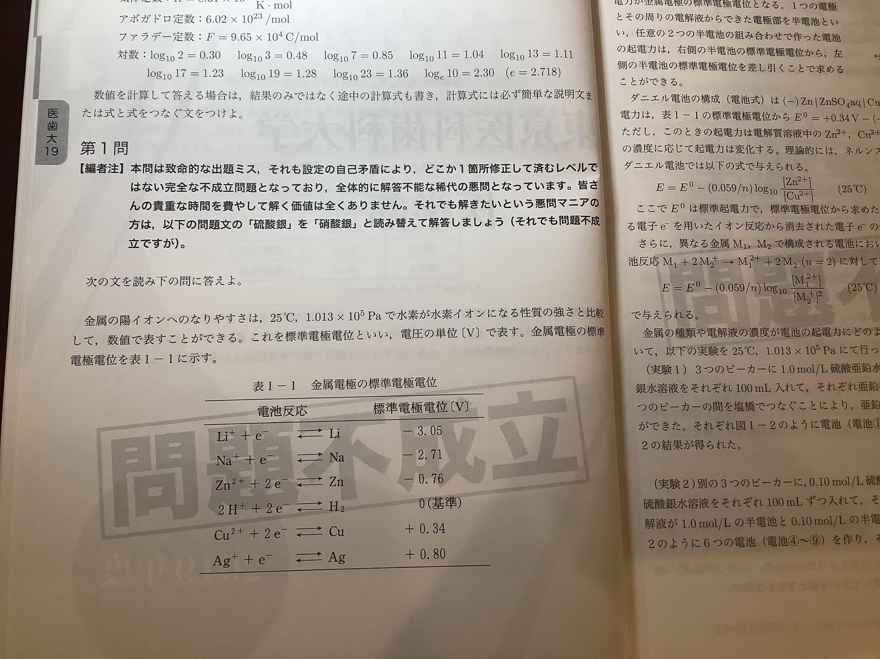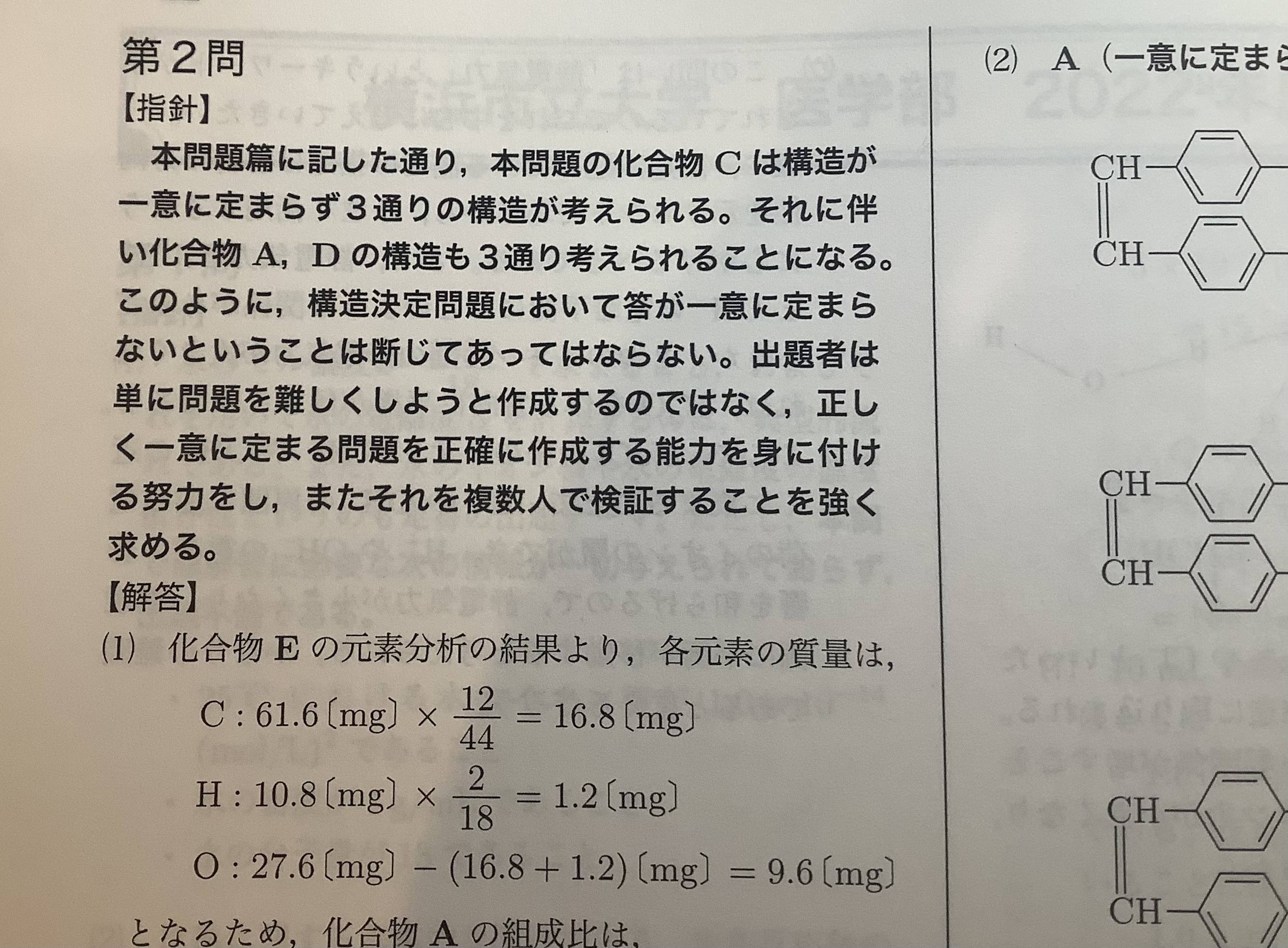 あと問題不成立の奴は化学だと最後まで特定しきれないのに解答書かせるのが多い