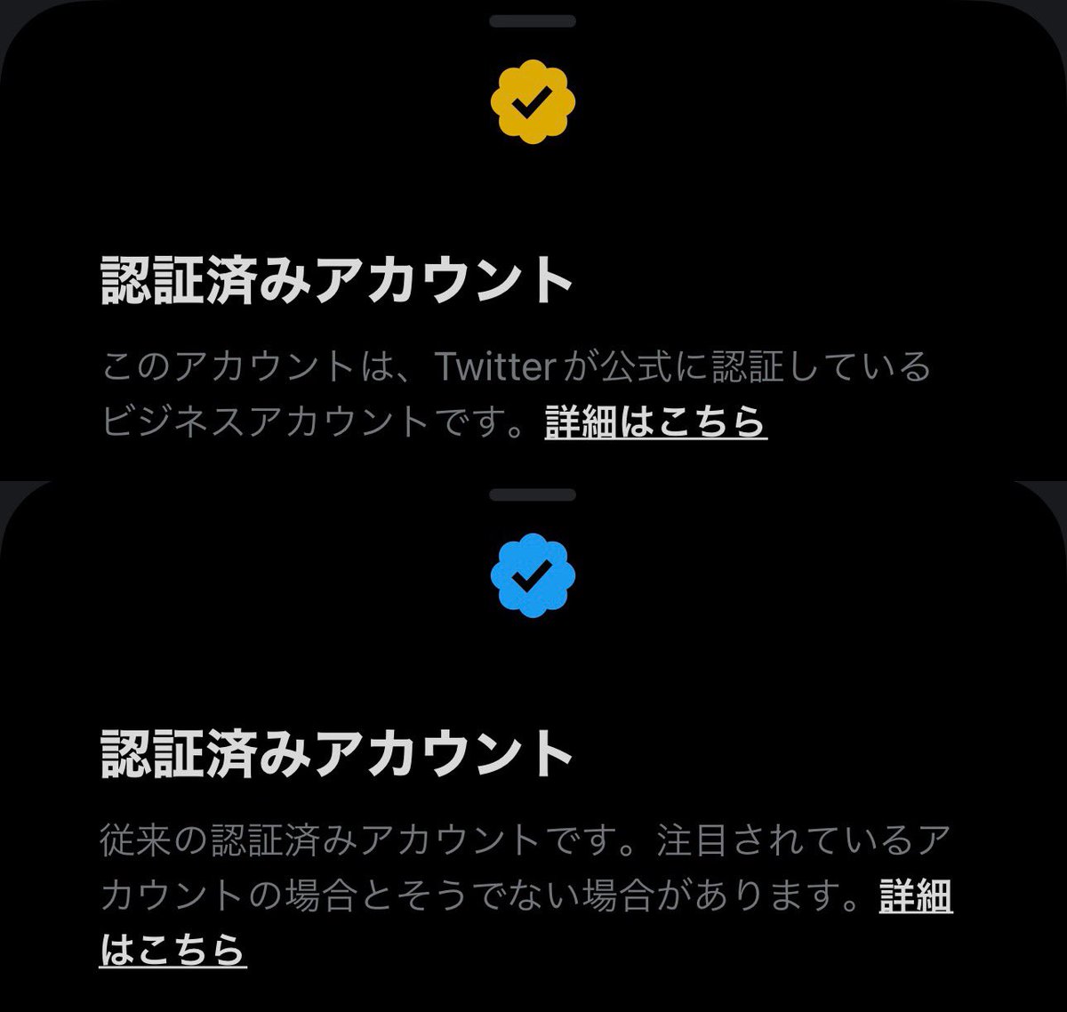 元々Twitter社が認証してたアカウントのうち、大手企業とか信頼出来る一部に限り金色マークに格上げされてる