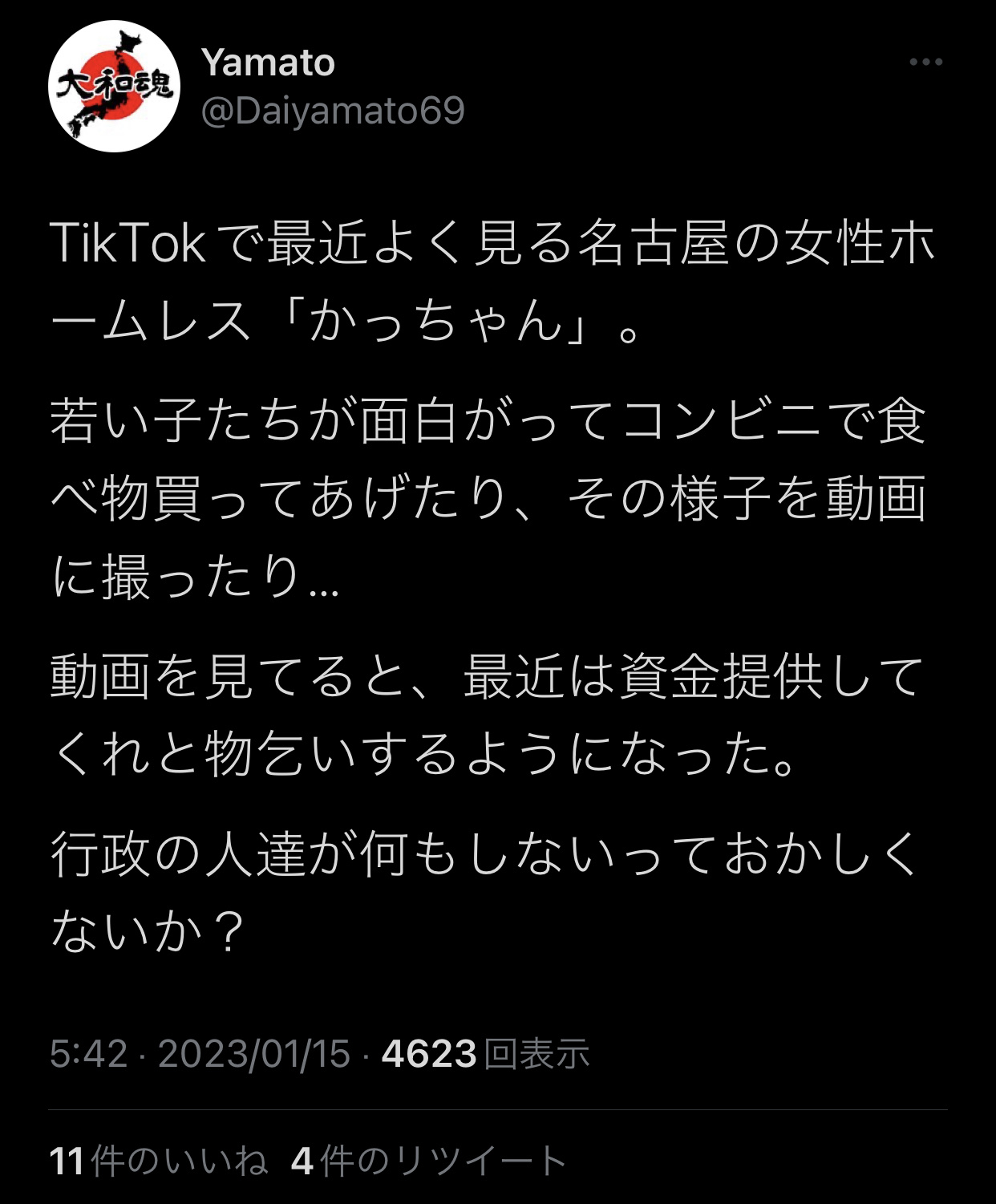 このホームレスの人は名古屋やと有名な人やったりするん?