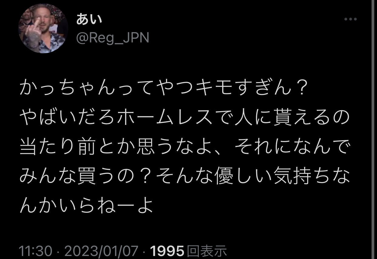 ホームレスしか優位にたてる相手おらんのやろな