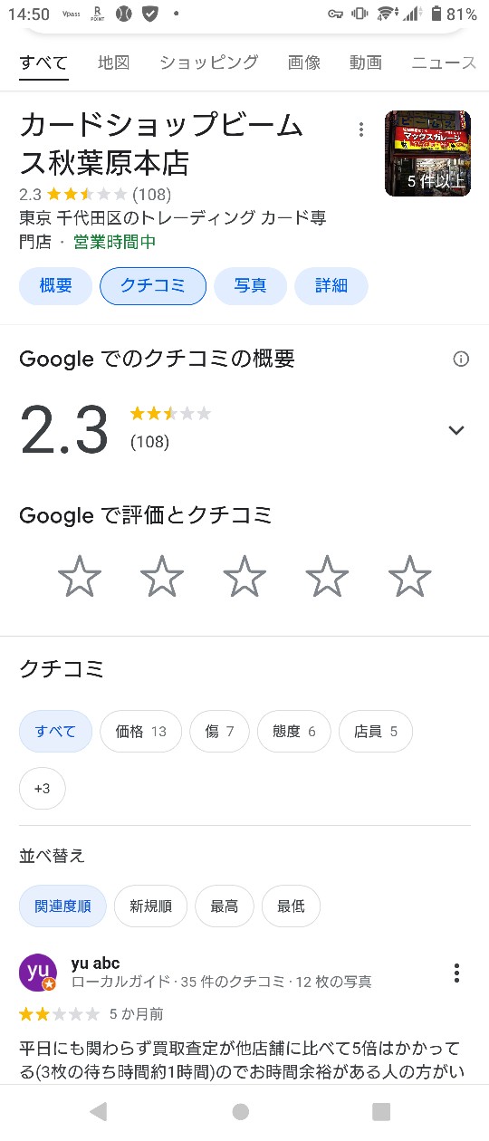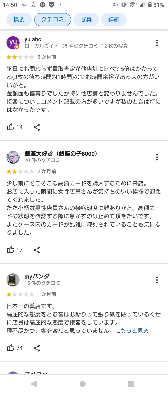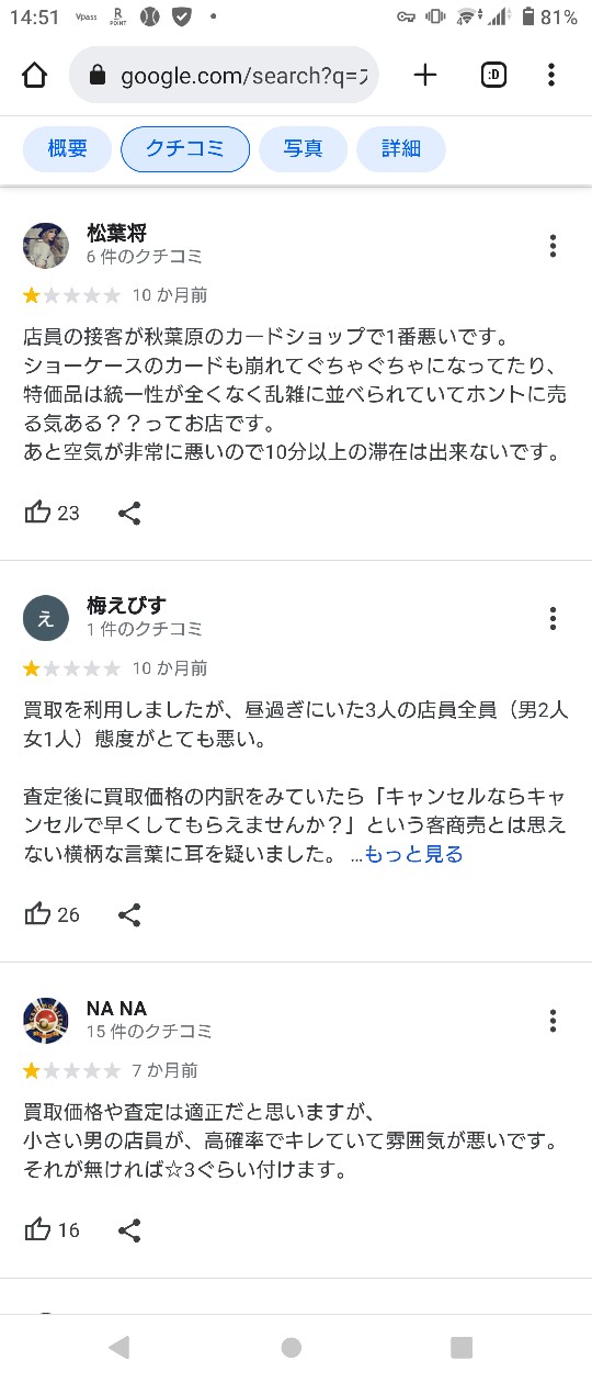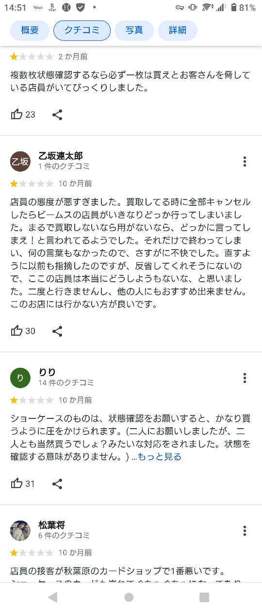 でもカード屋のレビューなんて精神科のレビューみたいなもんだから、これだけだとどっちが悪いのかまだ分からないという