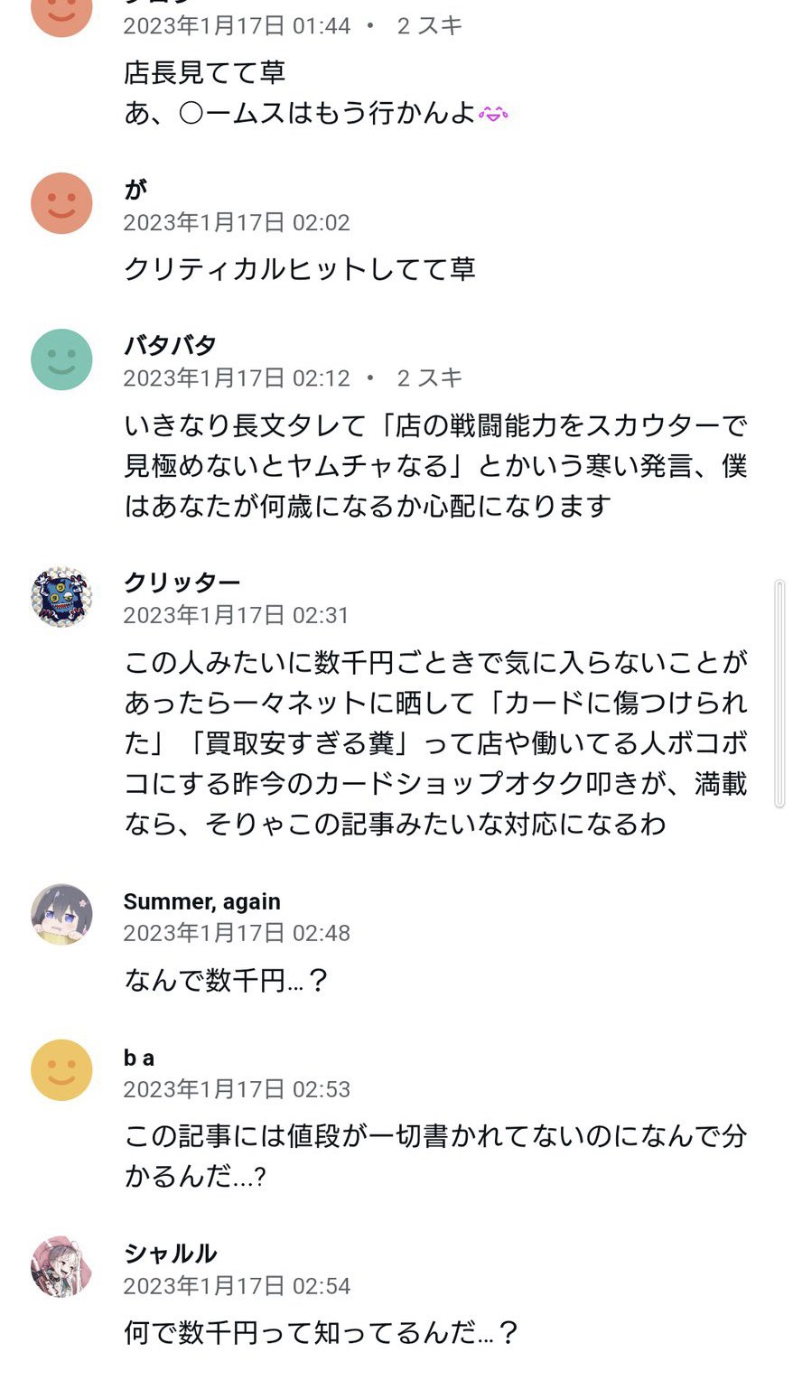 マジで申し訳無いけどカードゲーマーってだけでどうせ客側もキモい対応してたんやろって思ってまう