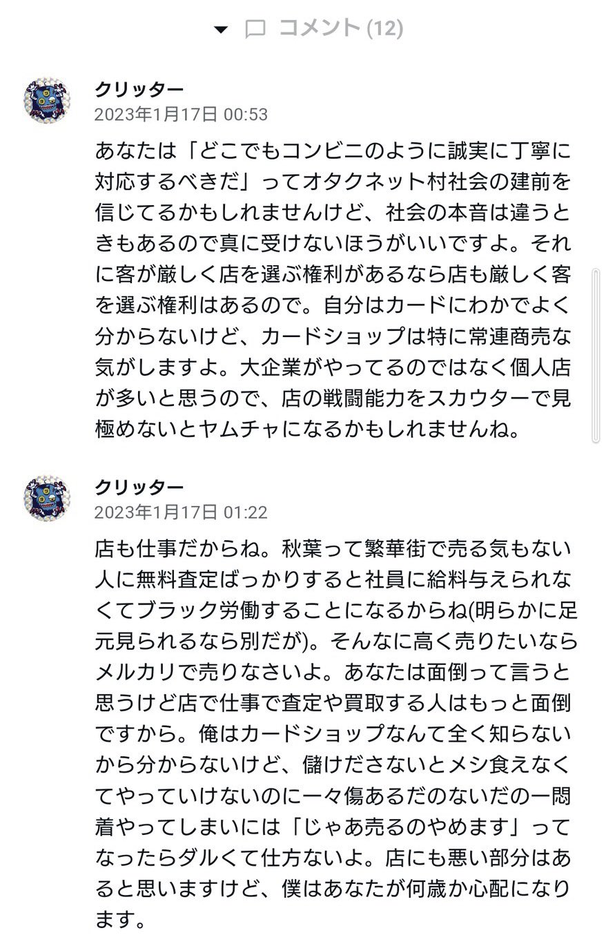 カードショップのカスみたいな客対応が許される価格帯を超えはじめたんだろう