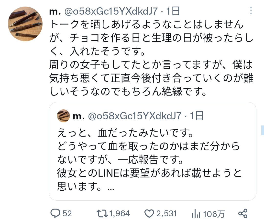 好きな人には血を飲んでほしいというのが乙女ゴコロでしょ