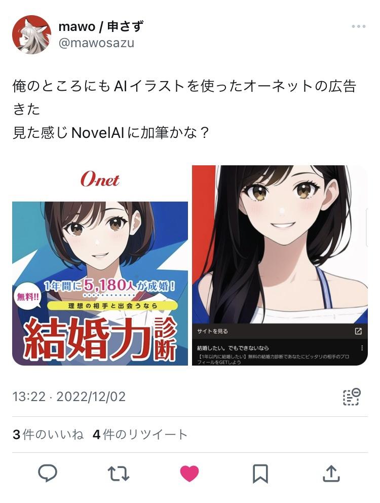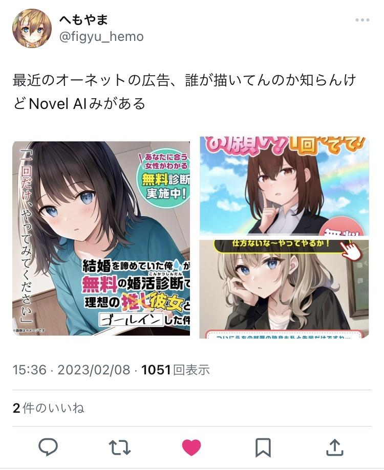 初期のNovelAI丸出しのしょぼい画像乱用してる広告見たら金無い質悪い企業とサービスなんだなってネガキャンにしかならん