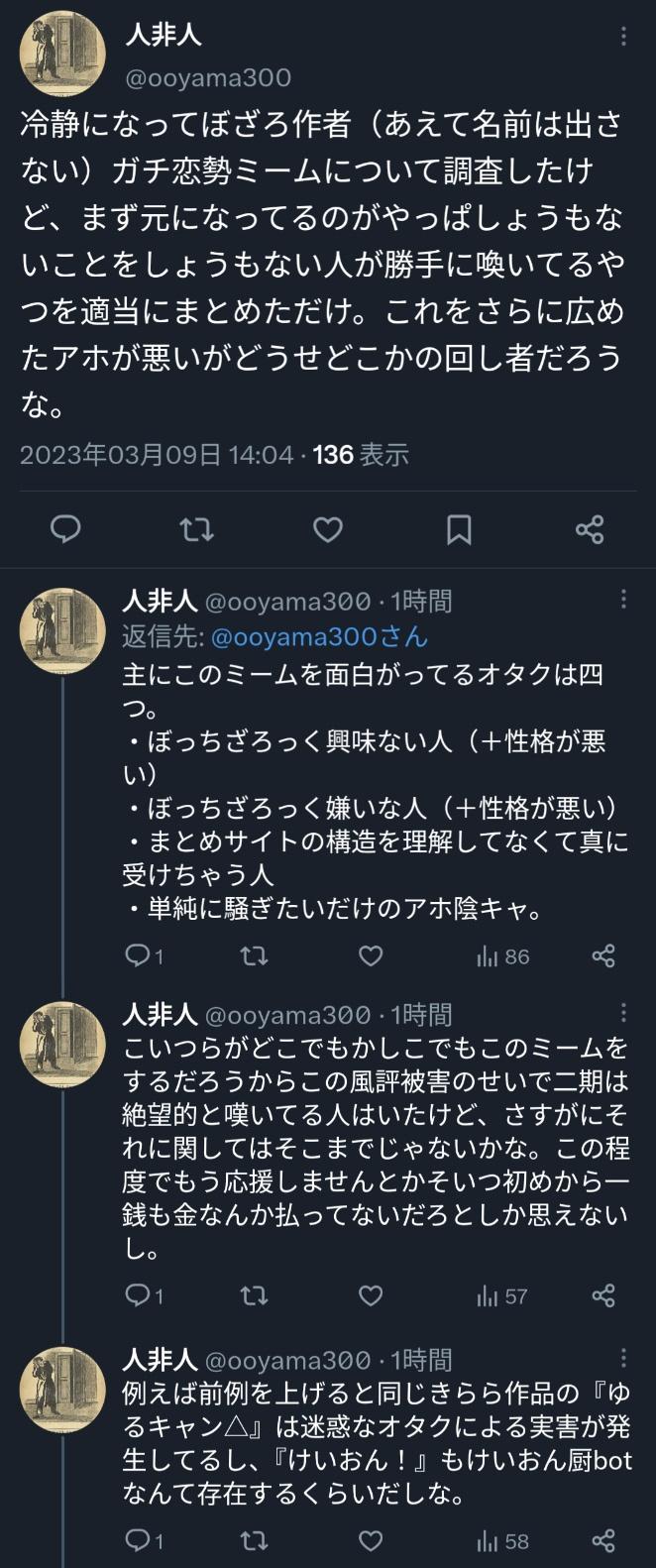 ぶっちゃけガチ恋なんておらんやろってノリで適当にふざけて煽ってたんやけど