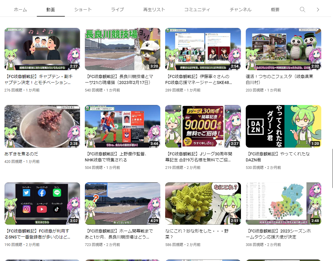 よう見たらサッカーだけじゃなくて岐阜の観光紹介動画も伸びてへんな