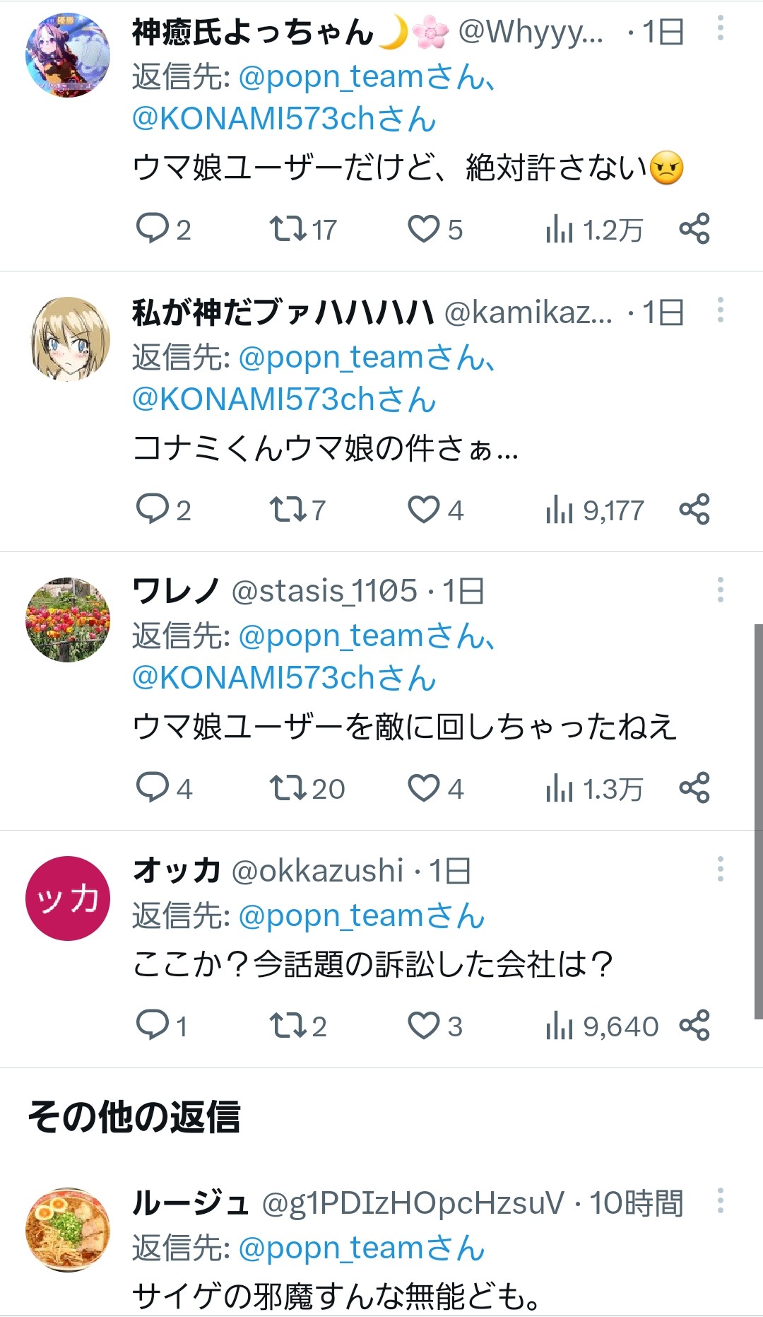 KONAMI許さんってやつ覗くとみんなウマ娘の画像あげてるやつでほんま草