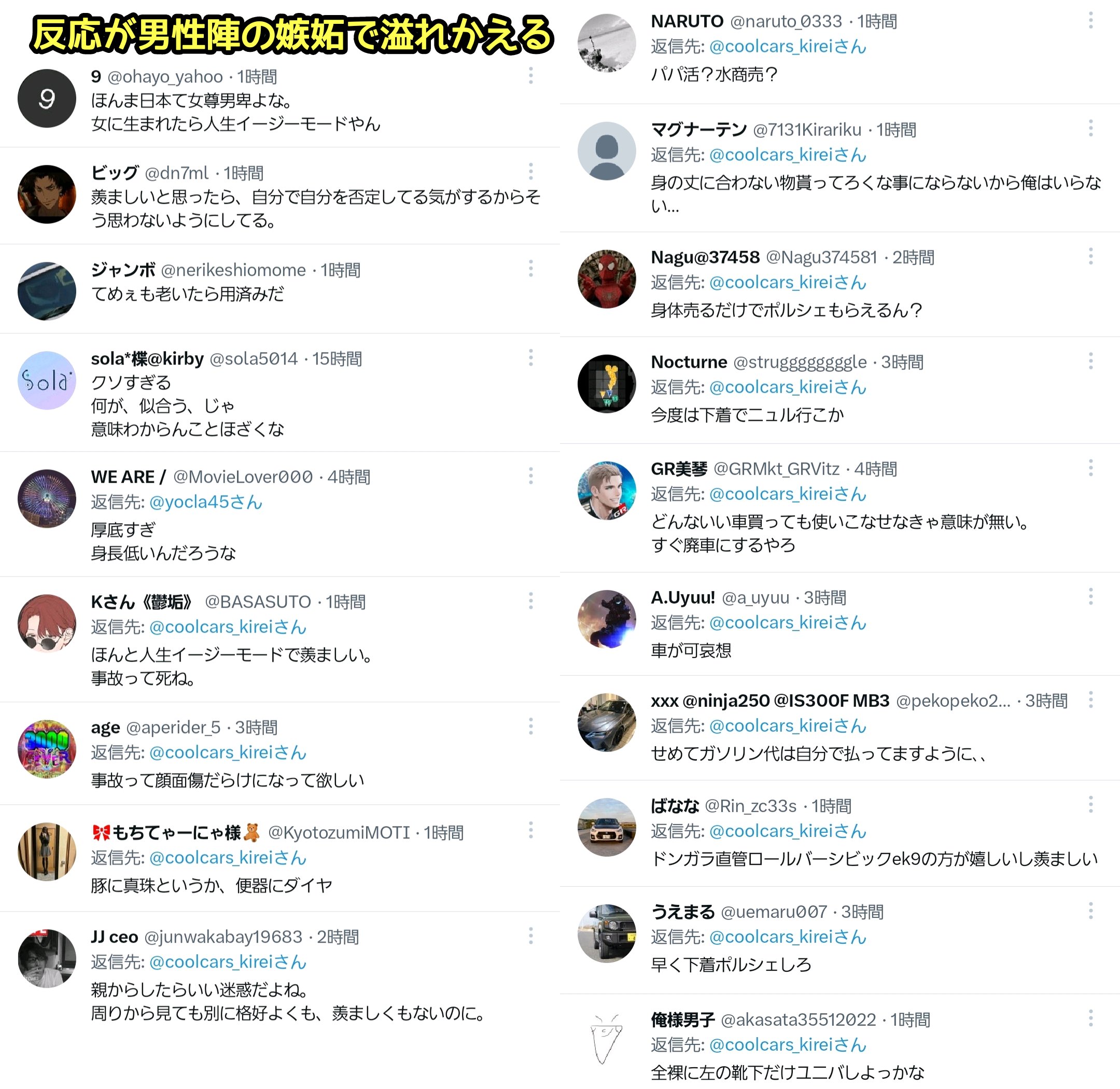 若い女ってだけでポルシェを手に入れやがって