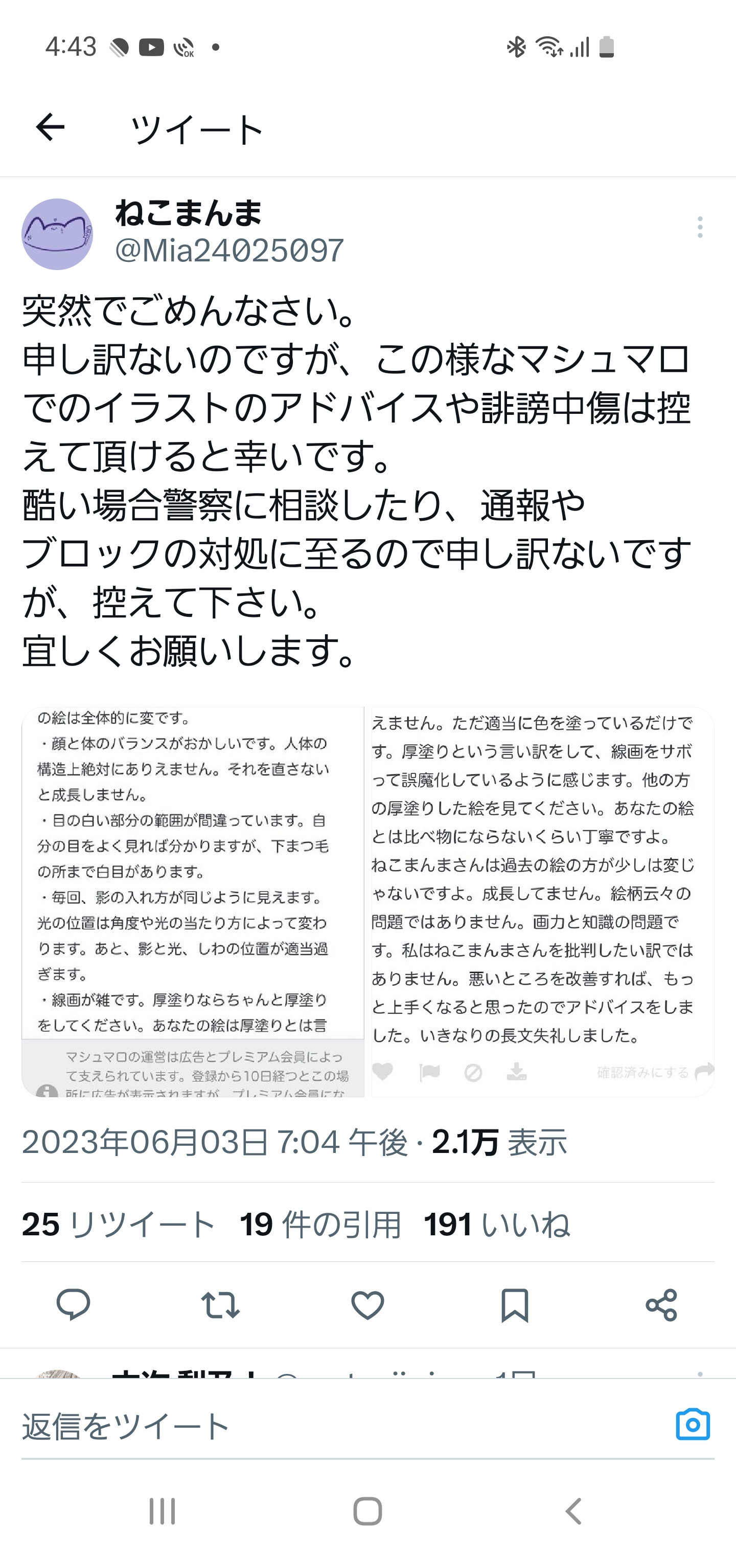 こういうリプ付けてブロックされた絵描き(その人も相手もめちゃくちゃに上手い)をマジで見たことあるが、当たり前だろと思った