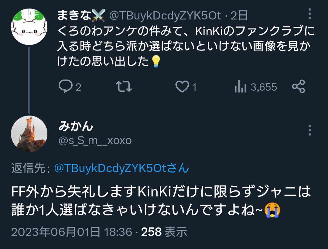 ジャニーズのキンキキッズのファンが堂本派と堂本派で揉めてたくらいやし、昔からあるんやないかこういうのは