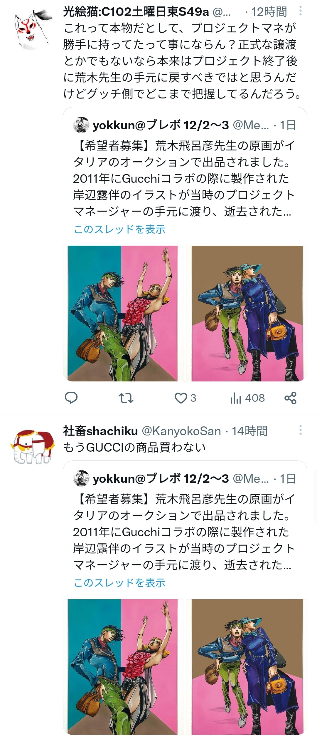 たとえ荒木が絶対売るなよ!って言ってGUCCIやそのマネに譲ってたとしても効力ないで?