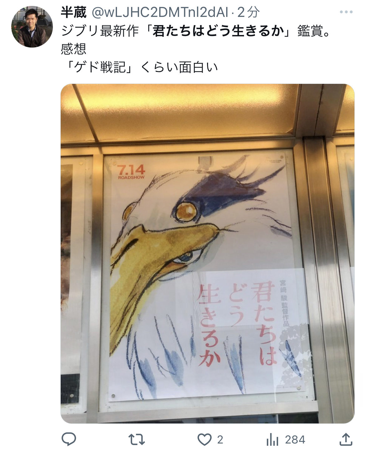 広告出さなすぎてジブリの新作が今日から始まることを知ってた人の方が少ないやろ多分