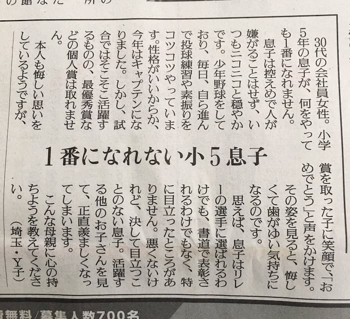 いいんじゃねーの?そんなに平凡が悪いかよ?この投書どこまでが本当なんだろうか?