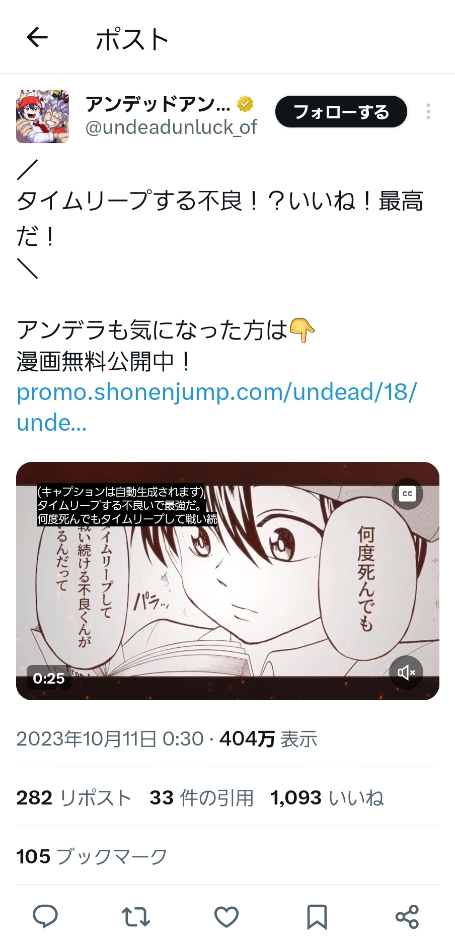 — アンデッドアンラック原作公式@毎週金曜アニメ放送☄️ (@undeadunluck_of) October 10, 2023