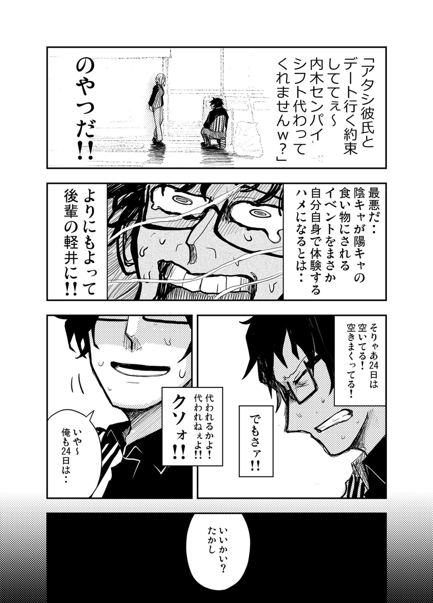 【画像】この漫画の陰キャ君、クリスマスに予定を聞いてくる後輩を警戒しまくってしまうwwwww 2023年12月15日 40 コメント シミズヒロノリ @shimizumanga【再掲】クリスマスに予定聞いてくる後輩の漫画です(1/2) pic.twitter.com/oAg2whSa9q2023-12-14 19:04:10 ※関連記事 バイト先のJK「あの…クリスマス予定空いてますか?」ワイ「彼女とデートだけど…」→結果www 1001 おすすめ記事 シミズヒロノリ @shimizumanga(2/2) pic.twitter.com/DR0vw0nATu2023-12-14 19:04:45 伊織 @jam_ej おばあちゃんー!!!!2023-12-14 21:49:43 ぬりぬりぬりぬりぬりぬり @nurinruidenI1l 一瞬カイジ調になるのすきw2023-12-14 19:44:58 Yuta@AIイラストはじめました @mayamayuzumi 24日予定できたね!👍2023-12-15 00:50:03 リョーサック/MZDA🍩 @ryorockin 婆ちゃん‥。昔、毒リンゴ持ってた?2023-12-14 21:02:31 ターナー🐣@vチューバー準備中 @lucifershummer2 あれ?このばーちゃん世紀末にもいなかった? pic.twitter.com/y8RcIjOJB42023-12-14 22:47:07 ケン @xUGkdn8O8uWsmTF 後輩ちゃん、最初凄く見下してくるなと思ったら自分がしゃがんでるからそう見えてただけか、上手い2023-12-14 20:14:40 K @K73107930 ばあちゃんスペック見たいなゴツさしてるめちゃくちゃ長生きしそう2023-12-14 21:11:27 ON @yskeitb こうなるだろうと思ったがこうなって良かったd('∀'*)2023-12-14 23:50:25 内科医くま🐻 @kuma1206いかん、こんな数コマで僕の現実にはなかったはずの酸っぱい青春を思い出した… 2023-12-14 22:42:07 ぼる @SukiVortexミーム化してるけど実際付き合ってもないのにいきなりクリスマス誘うのあんまないよね 2023-12-14 21:55:59 ゴーストライダー @ghostwriter_1全ての隠キャが救われるシチュエーションだったわ 2023-12-15 00:40:17 あさぎ𝕏 @AsagiYashaまだだ…まだセンパイ、アムウェイって知ってるっスか?がありえる。油断してはいけない。 2023-12-14 21:02:44 ヲヲタ胃下垂 @bqpd_org暇なわけないやろ。M-1あるのに。 2023-12-14 20:59:25 虚無虚無プリン @qwer1121qwer596呼びかけてきた人は双子なの?って思った。2人が話しかけてきたようにしか見えなくて混乱した 2023-12-14 23:35:57 🥬こうへい@打倒実験レポート @hodaka_ecoこの上から見る感じの視線めっちゃ好き… 2023-12-15 00:09:42 や⸜❤︎⸝ @yasu_k26いつになったらこうなる?前世で悪いことしたかな? 2023-12-15 00:09:40 kamy スヲミンツホケレイロミフエホ @kamy_m25ばあちゃんジブリと北斗の血入ってそう。 2023-12-15 00:15:35 ぬすてふ団長 @nusutefu_予定聞いてくる女の子待ってます。 2023-12-14 20:46:02 1001:おすすめ記事 【画像あり】おっぱいピアノさん、限界突破 同級生「おい、お前がAV女優やってること地元のみんなにバラすぞ!やらせろ!」→結果wwww 【閲覧注意】ガキ、感電死しかけるも通りすがりのオッサンの『奇策』により救出される (動画あり) 【画像】大手Vtuber事務所の中国運営、南京大虐殺30万人の犠牲者を忘れるなと投稿してしまう 【朗報】なろう作家が考えた『日本の偉人を集結させた内閣』、最強すぎる 【悲報】ひろゆき「152円に戻ります。お小遣いチャンス」→今回も151.92円で下落してしまうwwwww 【画像】女性成年漫画家さん、お胸が大きすぎて限界突破へwwwww 1001:最新記事 コメント コメント一覧 (40) 1. 名無し@わんこーる速報! 2023年12月15日 07:39 ま、まあたまにはこういう薄味な展開もアリ…かな 0 onecall_dazeee がしました 32. 名無し@わんこーる速報! 2023年12月15日 12:49 >>1 こんなんで売れる作者いいなぁ 絵上手く描きたい 0 onecall_dazeee がしました 38. 名無し@わんこーる速報! 2023年12月15日 14:22 >>32 絵なんて2000時間も練習すりゃ誰でも見られるレベルになるのに その程度の努力も出来ないなら無理や 0 onecall_dazeee がしました 2. 名無し@わんこーる速報! 2023年12月15日 07:42 誰もが想像する展開を裏切るだけの漫画多すぎだろ 0 onecall_dazeee がしました 3. 名無し@わんこーる速報! 2023年12月15日 07:43 Xこういう漫画で溢れかえってるけど 正直好き 0 onecall_dazeee がしました 4. 名無し@わんこーる速報! 2023年12月15日 07:52 最初から用件とセットで伝えないヤツはゴミ 0 onecall_dazeee がしました 7. 名無し@わんこーる速報! 2023年12月15日 08:14 >>4 そらこういう展開にするための漫画だし 0 onecall_dazeee がしました 11. 名無し@わんこーる速報! 2023年12月15日 08:28 >>4 異性を誘い慣れてないんじゃね? 照れてるみたいな、可愛いやん 0 onecall_dazeee がしました 26. 名無し@わんこーる速報! 2023年12月15日 10:53 >>4 気持ちは分かるが、返す刀も持っておくんや 0 onecall_dazeee がしました 5. 名無し@わんこーる速報! 2023年12月15日 08:09 ばーちゃんイケメンだな 0 onecall_dazeee がしました 6. 名無し@わんこーる速報! 2023年12月15日 08:13 これは普通に面白い やっぱベタだよな 0 onecall_dazeee がしました 8. 名無し@わんこーる速報! 2023年12月15日 08:23 ワイ「競馬」 0 onecall_dazeee がしました 9. 名無し@わんこーる速報! 2023年12月15日 08:24 でも現実では女から誘うことってないよね 何故ならオスに需要がないから 0 onecall_dazeee がしました 18. 名無し@わんこーる速報! 2023年12月15日 09:11 >>9 残念ながら競争率高いオスは誘われまくり 0 onecall_da