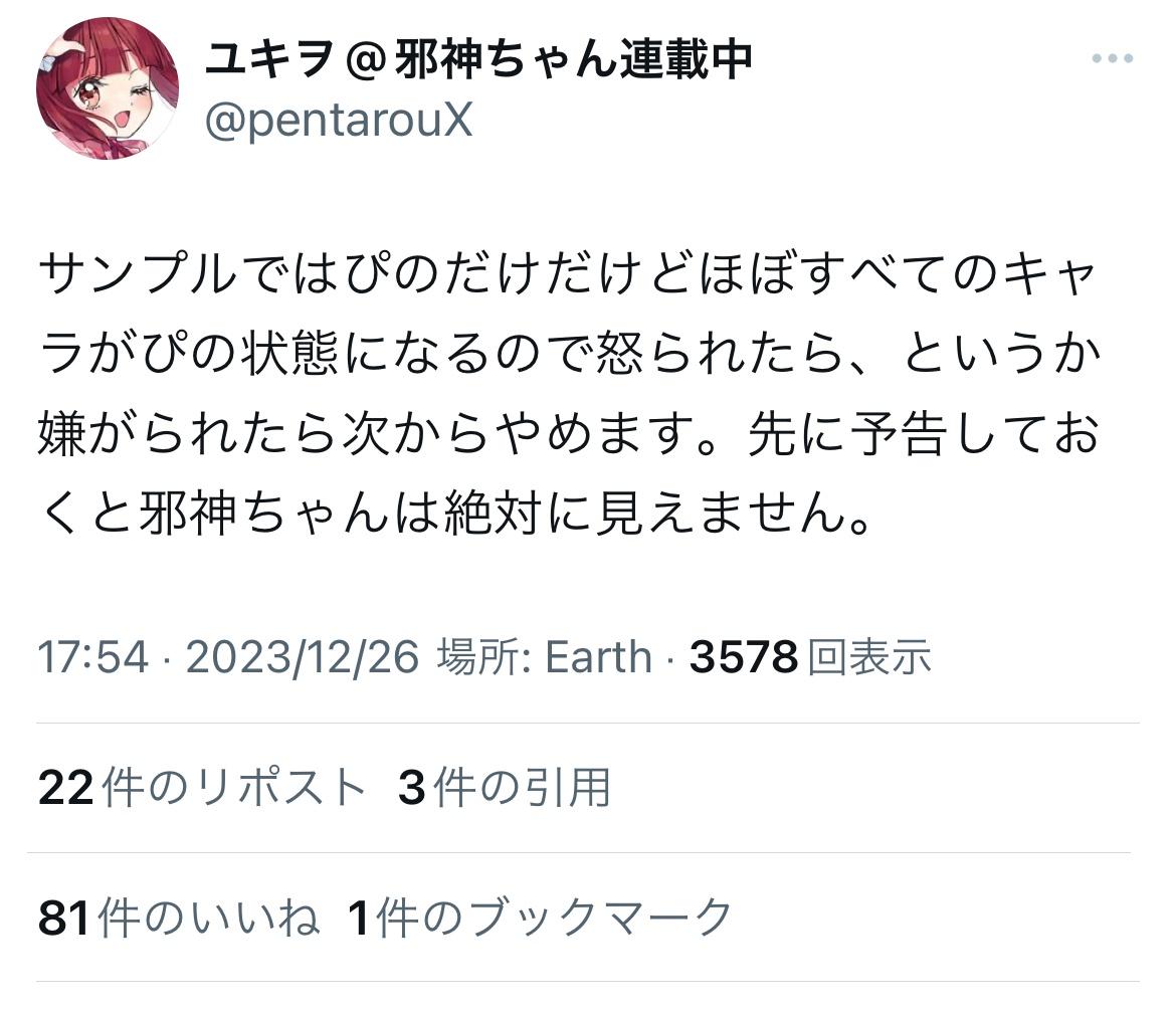 — ユキヲ@邪神ちゃん連載中 (@pentarouX) December 26, 2023