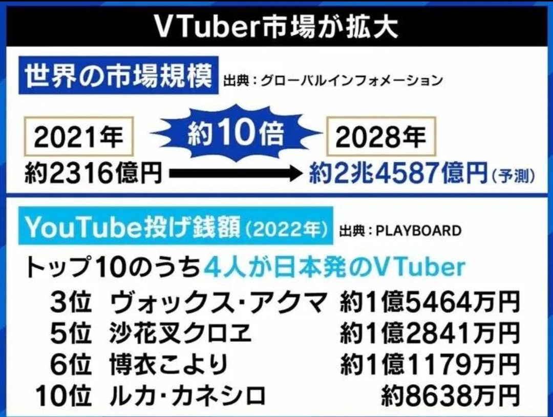 普通に考えてVtuber業界すらトップは海外にシェア奪われるってヤバくね?