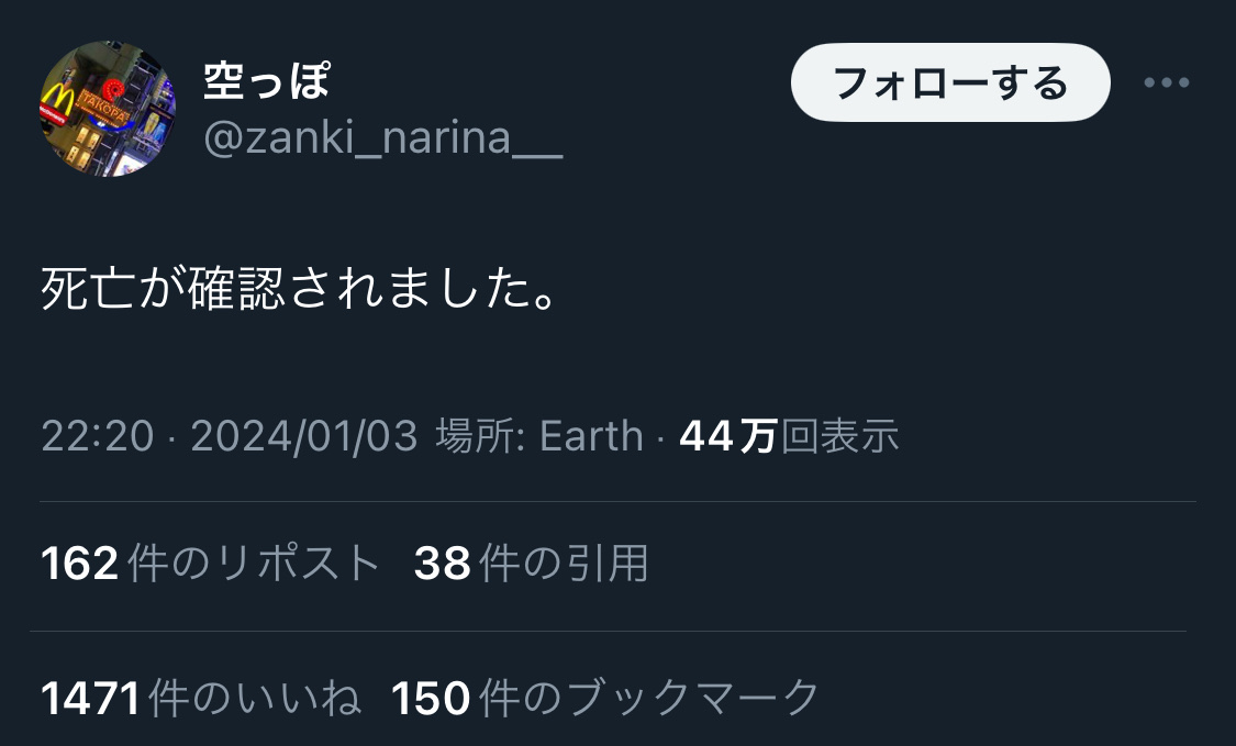 めちゃめちゃ焦燥感の見える文章から、死亡が確認されましたで急に冷静になるあたりがウッとなる