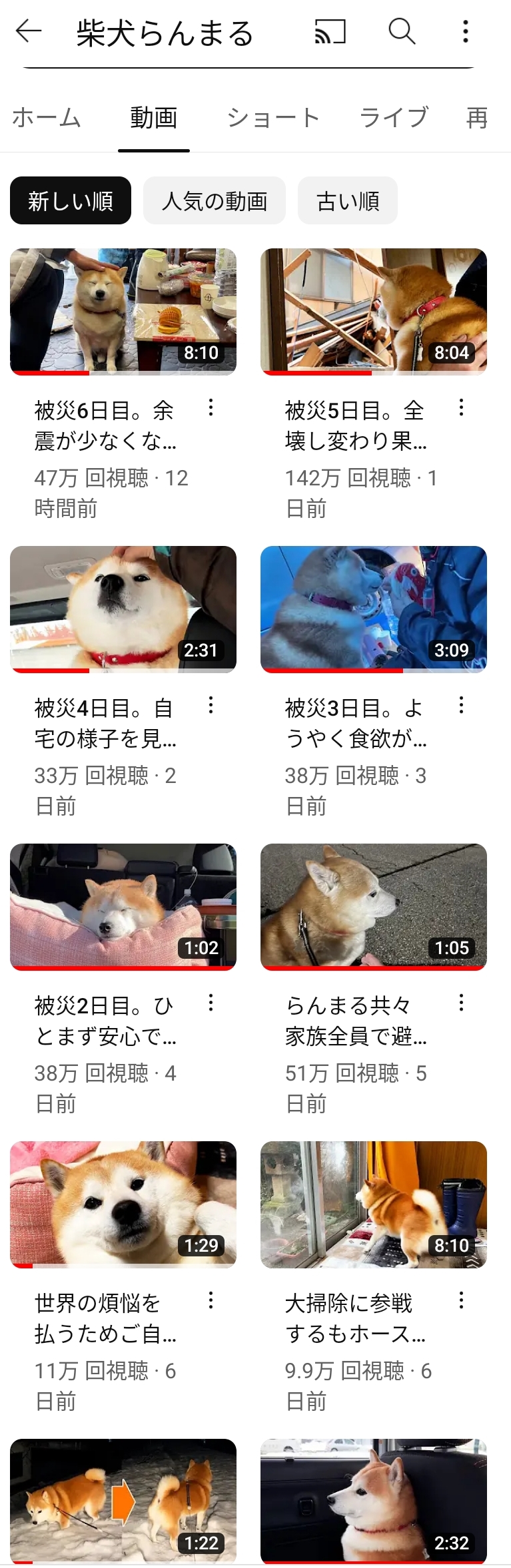 震災ブーストかかっても基本もちまるの半分くらいの再生数なの考えるとやっぱもちまるって別格なんやな