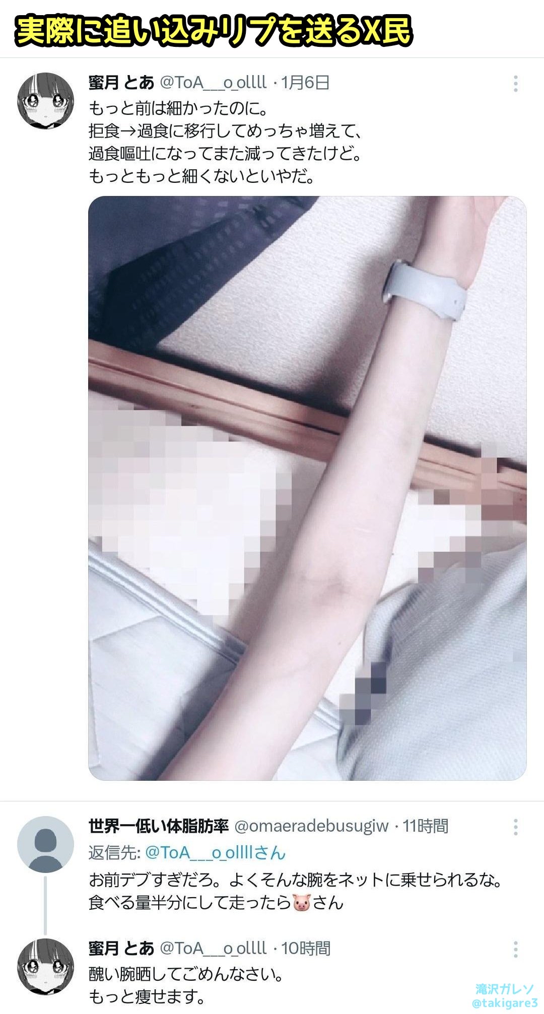 実行に移す鬼畜X民が続出#本日のトゥイッター #拒食症 #拒食 pic.twitter.com/8X79xd7M87