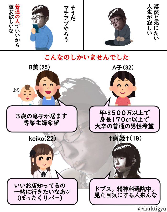 海外なら年収500万や身長170センチって低すぎるくらいなんだけどまだ妥協しろっていうのがもう無理・・・