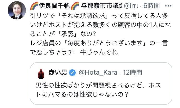 言い訳せんでもホストもキャバも周りから見たらはまるのは性欲としか見えないから安心しろよ
