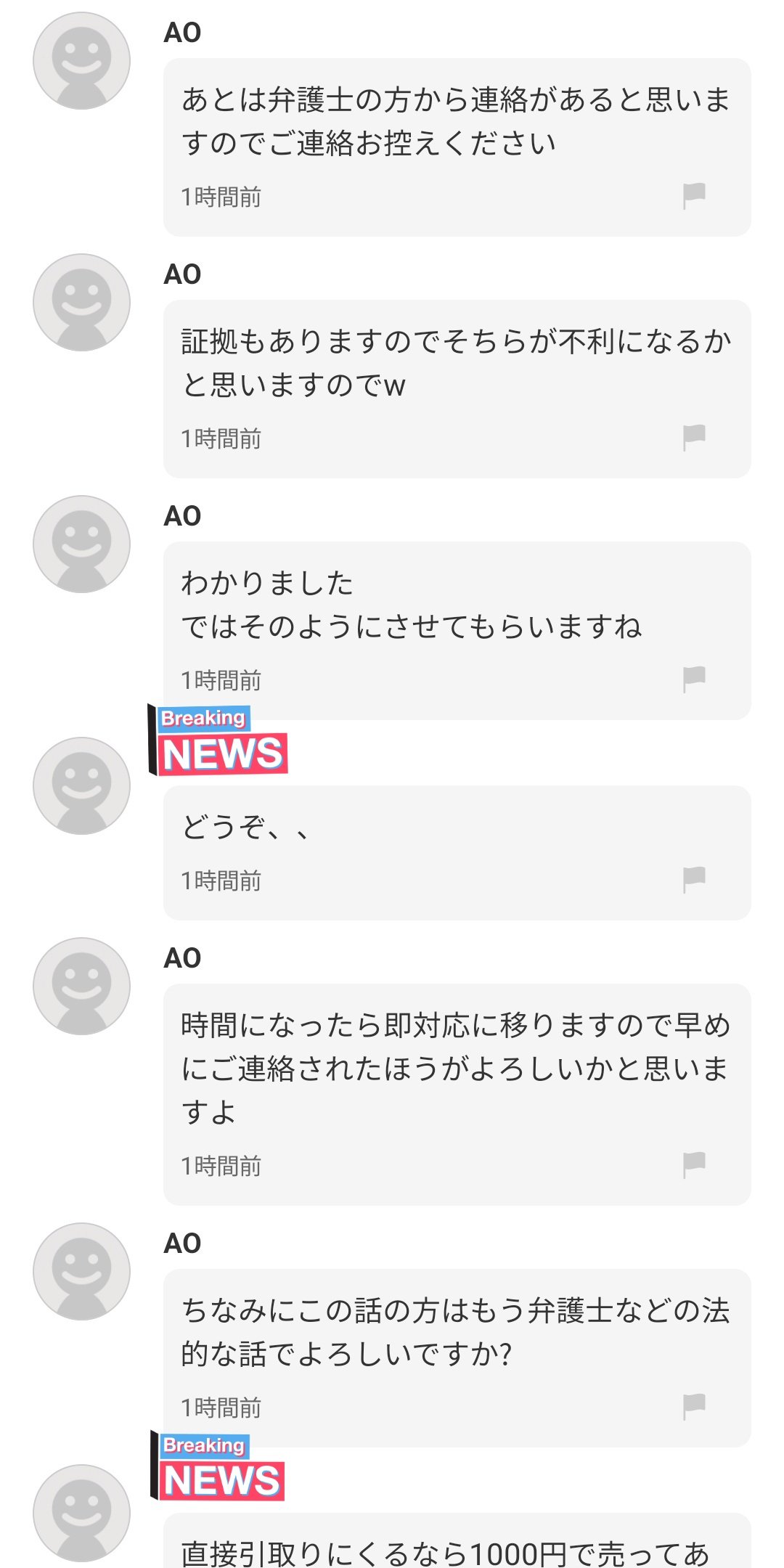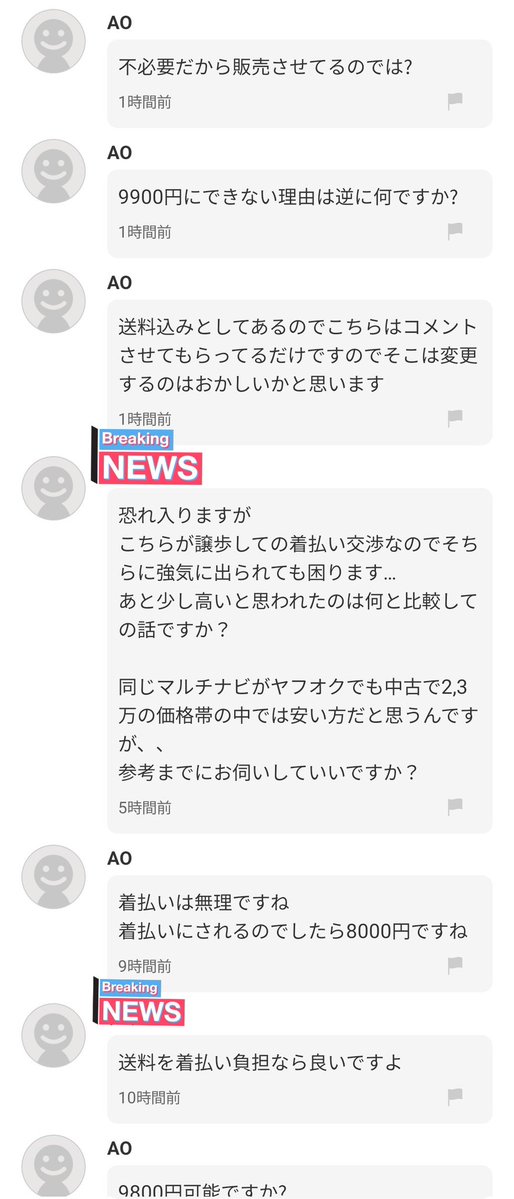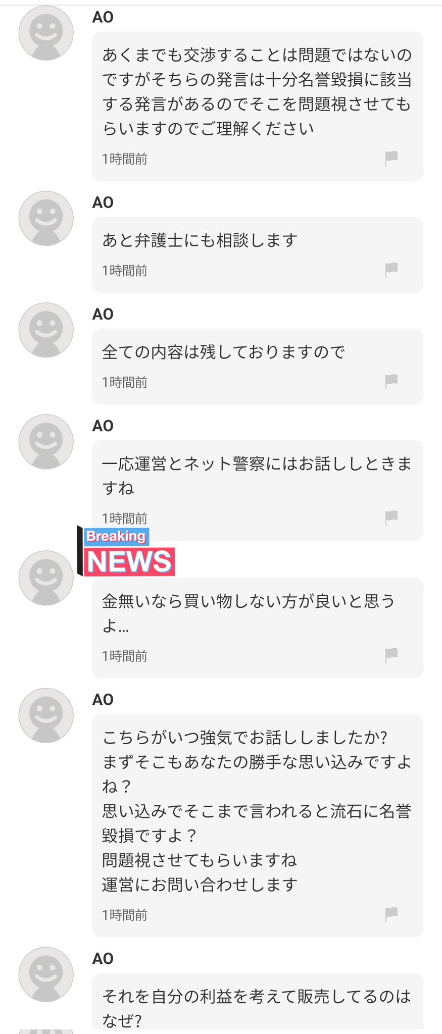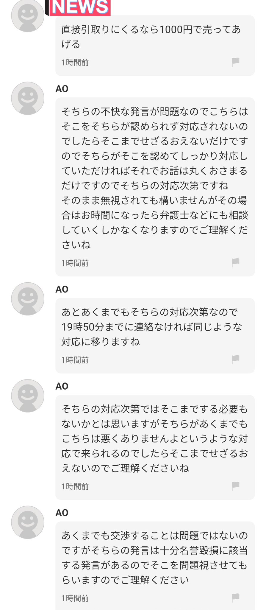 2000円値下げしてくれない出品者に法的措置を行う模様