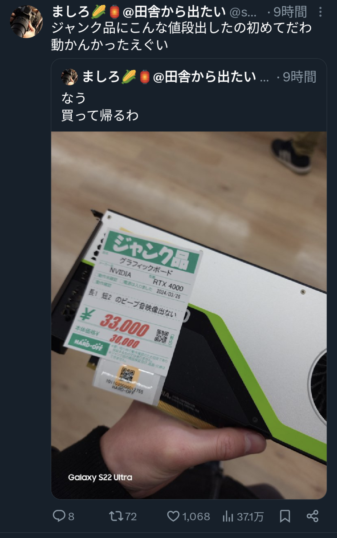だけど本当に決定的にぶっ壊れてて、そこを修理形交換しなきゃ動かないからジャンクが当然あるし