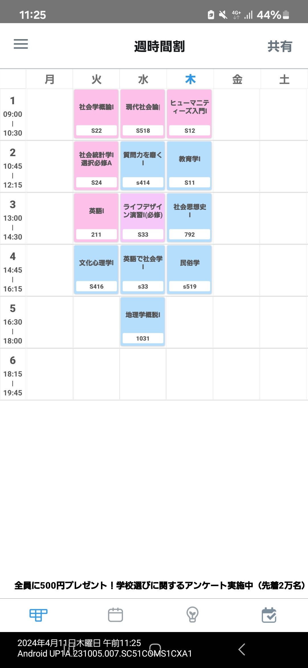 オレの時と科目名そっくりだし講義室の名前もこんなのだった気が