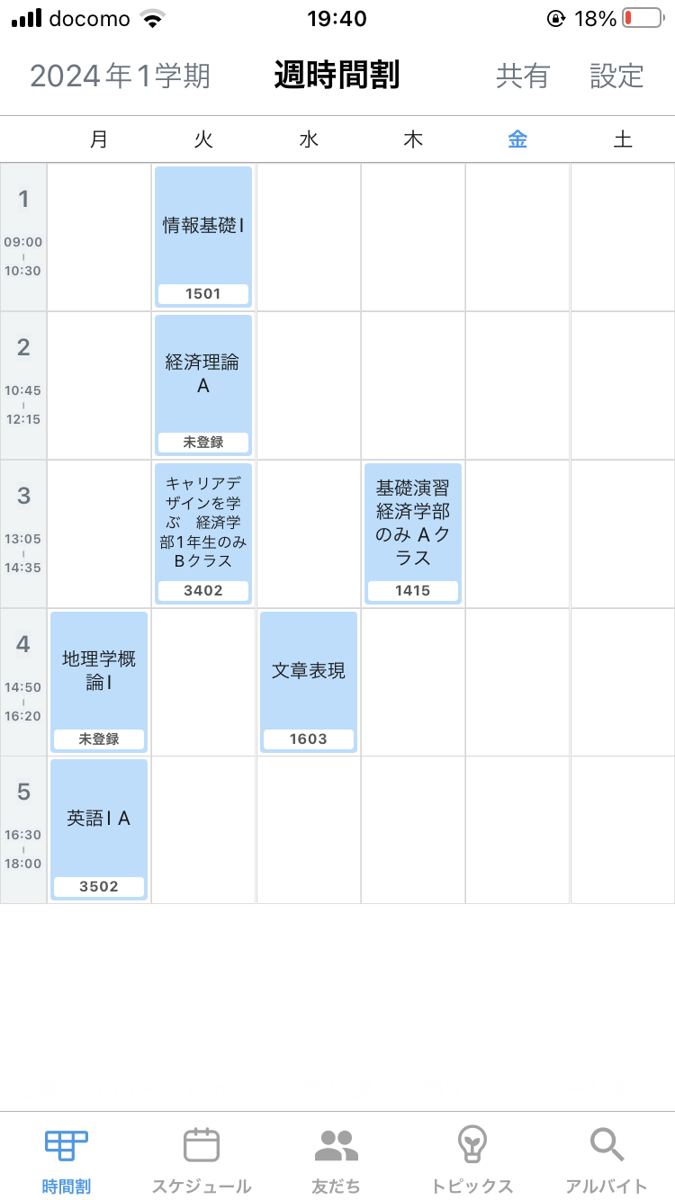 あり得んだろあの時間割。留年生の時間割なら納得だが。