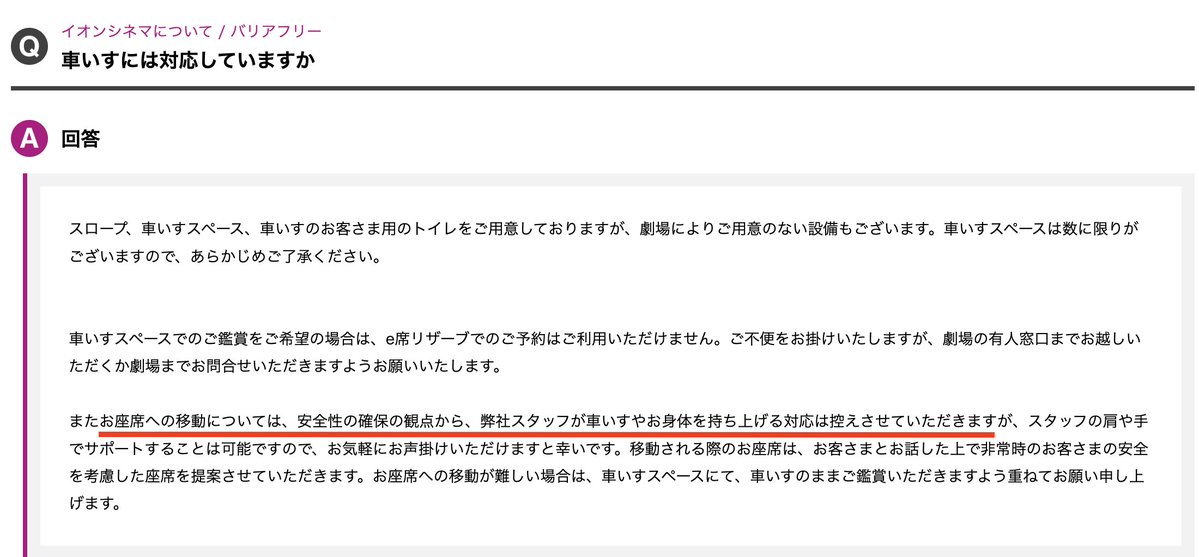 イオンシネマなんてどこもバリアフリー対応してるもんじゃないの?