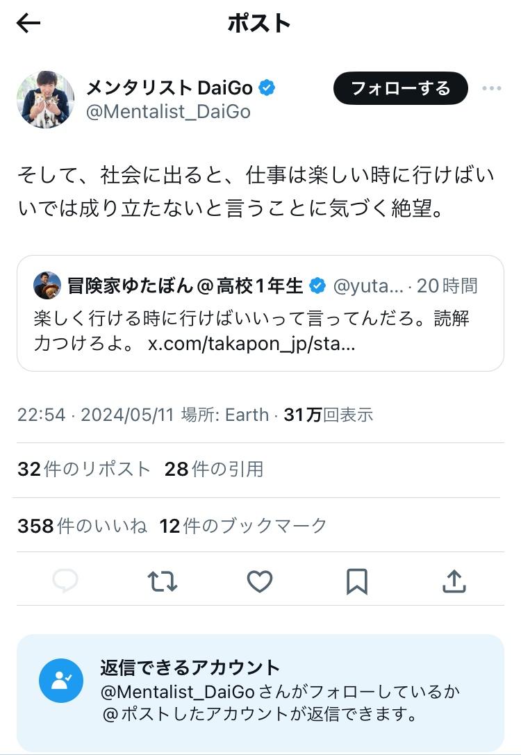 少なくともDAIGOが仕事が楽しくなかったりするんだろ