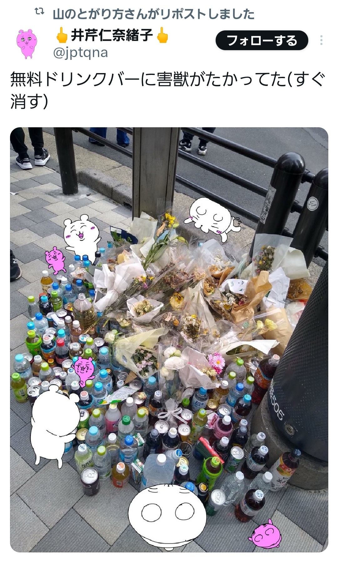 献花つってもゴミ捨ててるだけだしペットボトルも大概よな