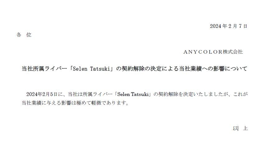 当社は、当社所属ライバーに向けられた攻撃的行為及び誹謗中傷行為等に対して、発信者情報開示請求などを含めた積極的かつ実効性のある対応を実施いたしますことを改めて宣明いたします。