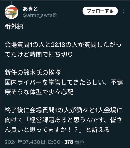 ライブだけじゃなく株主総会の会場もガラガラなのかよ