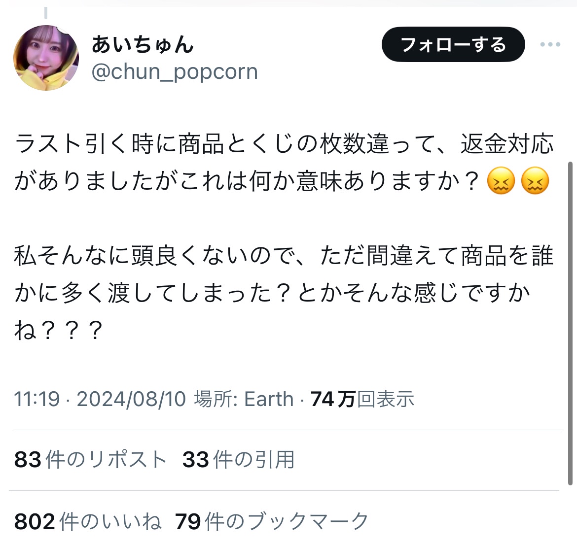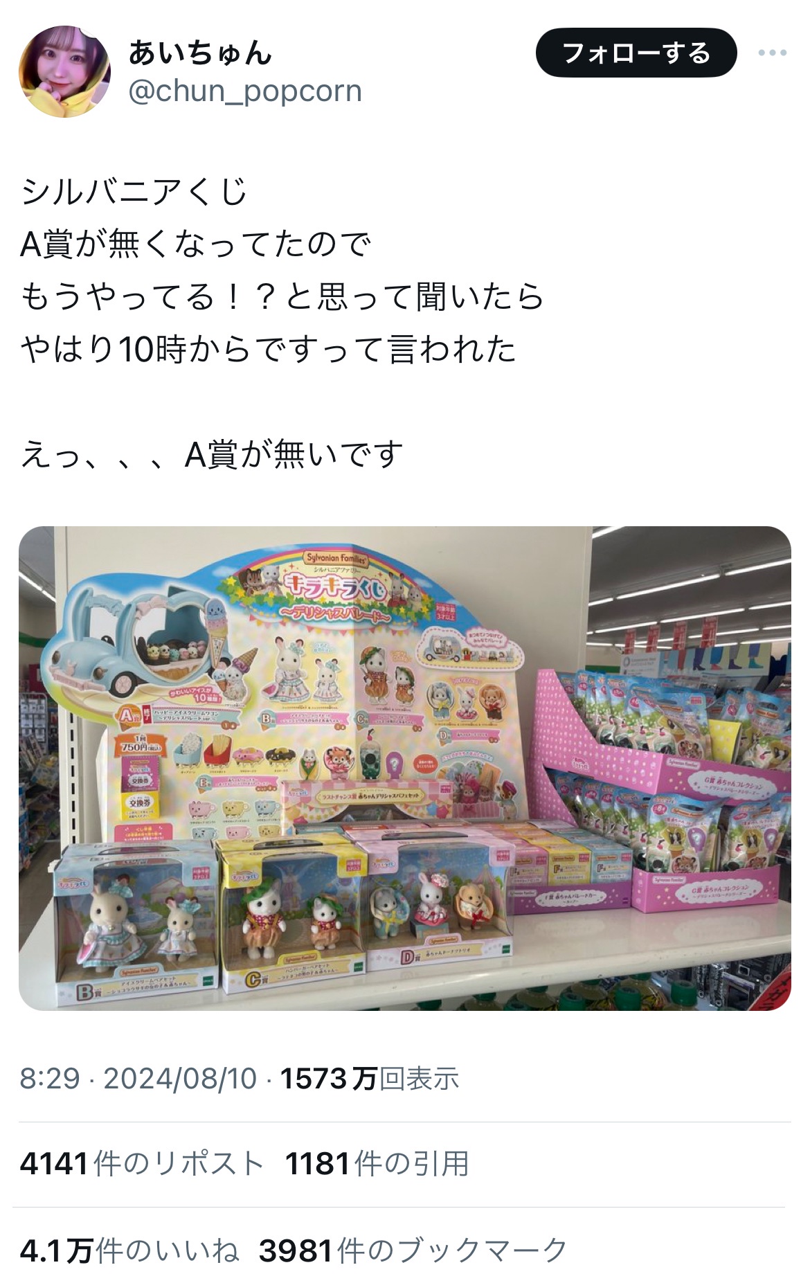 — あいちゅん (@chun_popcorn) August 9, 2024