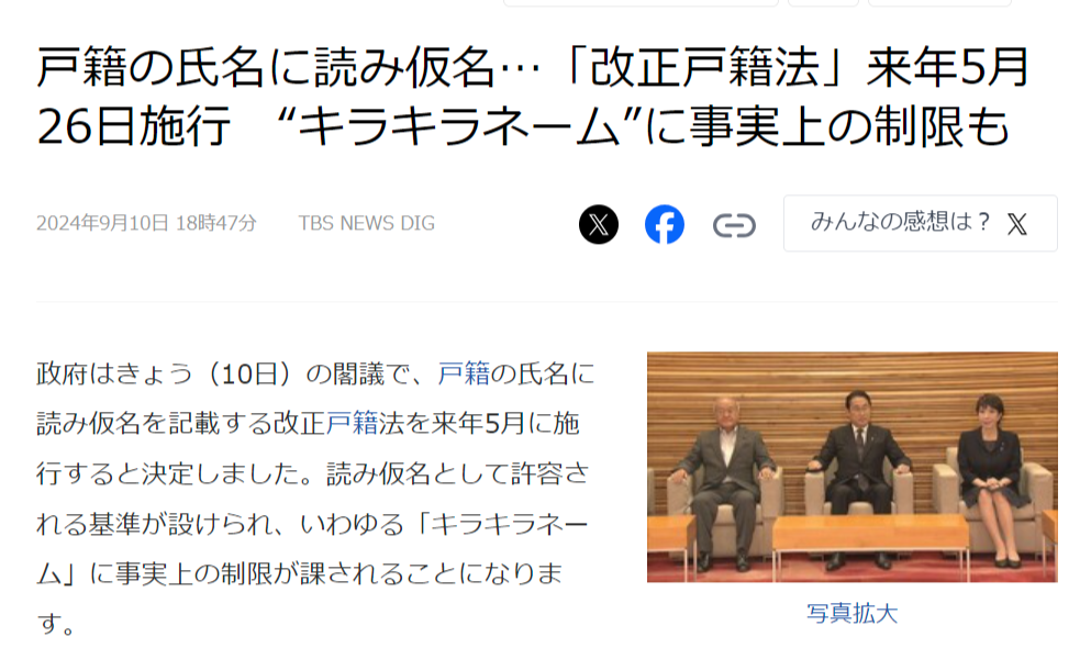 戸籍の氏名に読み仮名…「改正戸籍法」来年5月26日施行 “キラキラネーム”に事実上の制限も