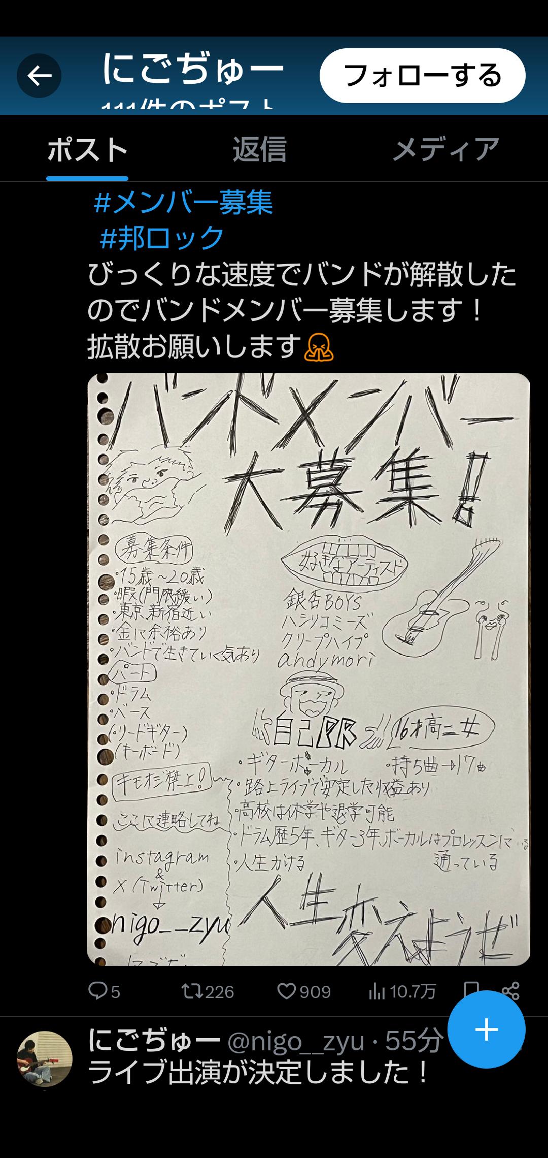 #バンドメンバー募集